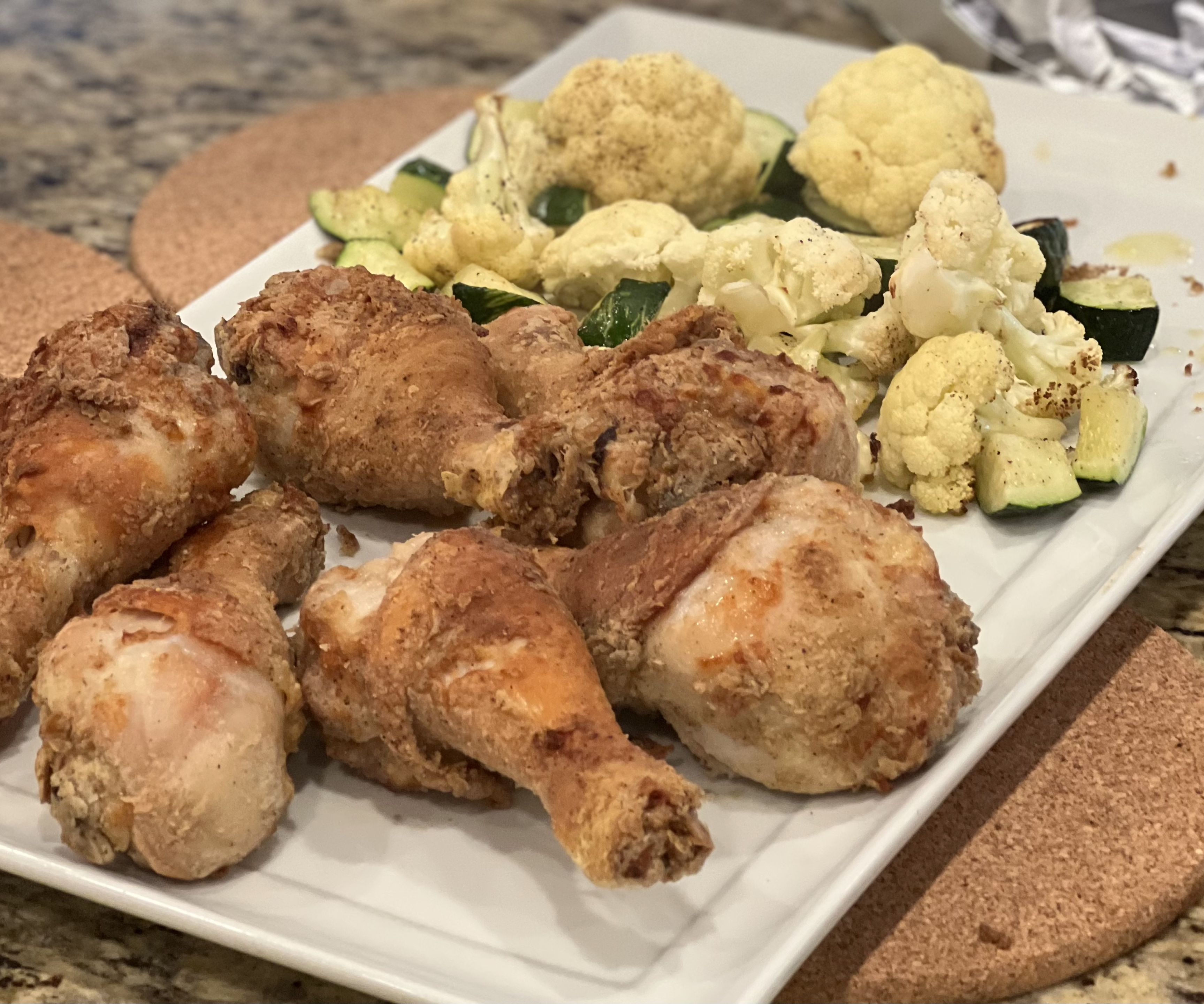I'm calling this a knockoff, even though it's a billion percent healthier, and it's not greasy and doesn't have the layers and layers of breading that KFC has. It's more about the crispy texture of the skin, and it comes pretty close to the "11 secret herbs and spices" taste.