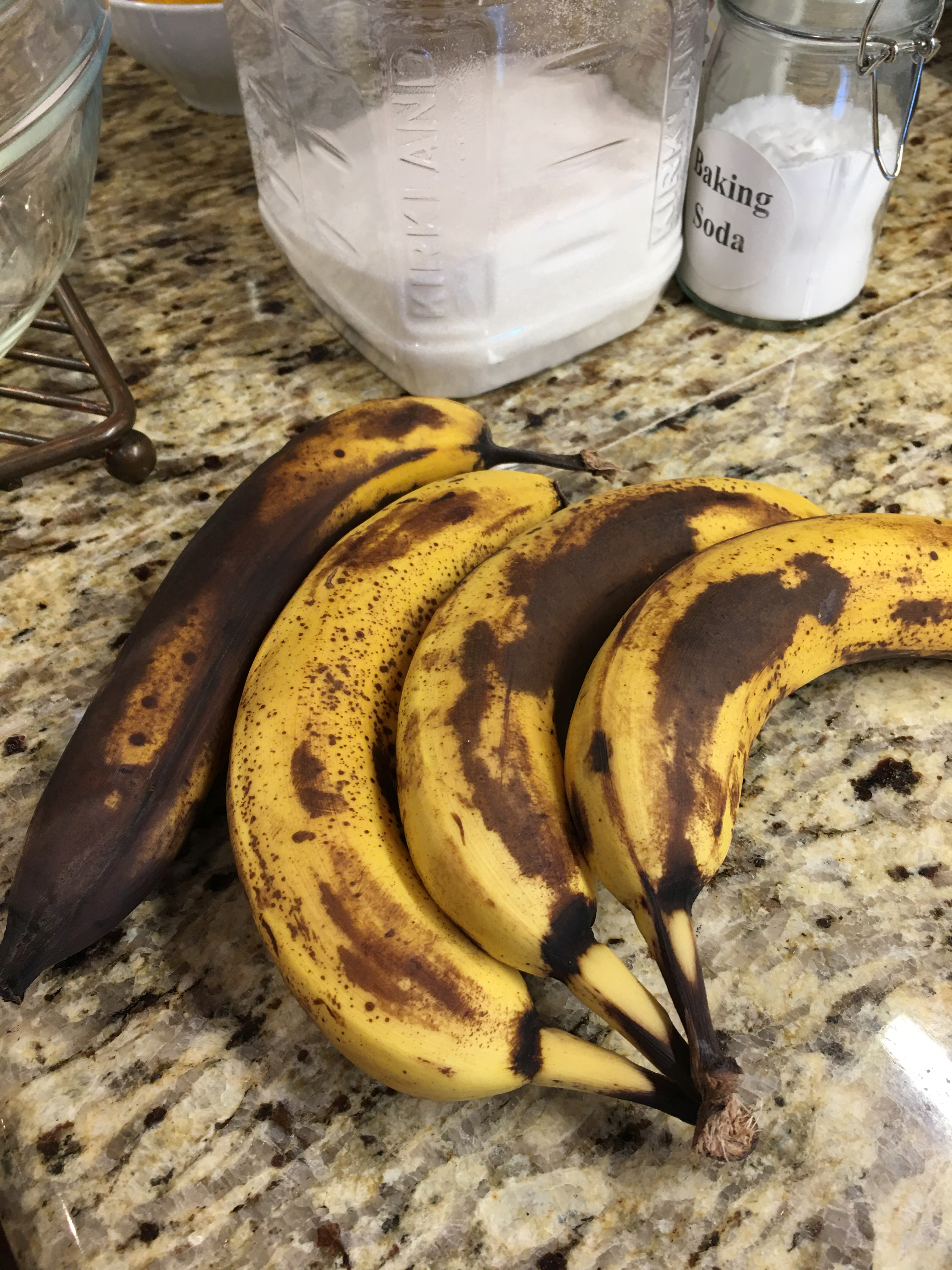 Melt the butter in a large mixing bowl (see notes). Add the bananas and mash until the mixture is nearly smooth (see notes).